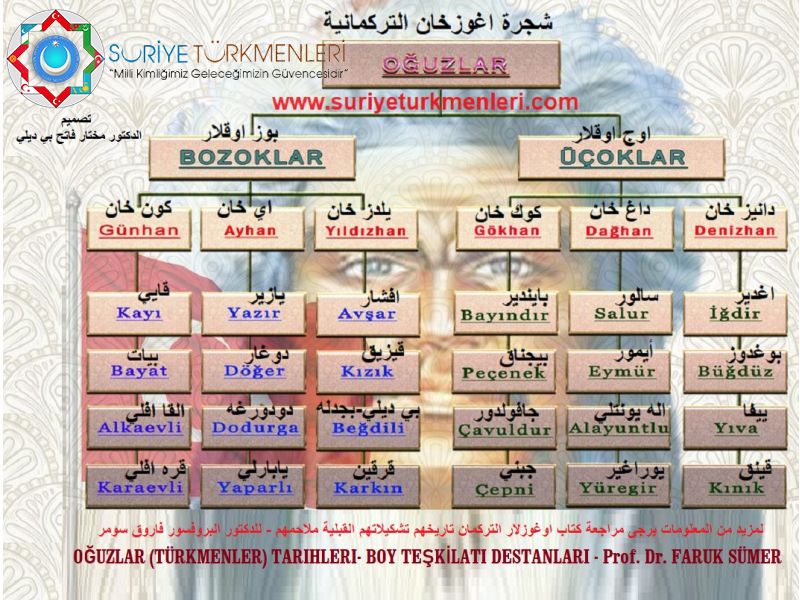 ونرى أن أسماء أحفاد الأوغوز خان هم أسماء العشائر التركمانية التي مانزال نستخدمها حتى يومنا هذا.